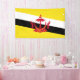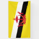 Dieses Design zeigt die Nationalflagge von Brunei (offiziell bekannt als die Nation Brunei, die Friedensstätte), ein Land an der Nordküste der Insel Borneo in Südostasien. Abgesehen von seiner Küste mit der Südsee ist Brunei vollständig vom malaysischen Staat Sarawak umgeben; das Land ist durch den Sarawak-Bezirk Limbang in zwei Teile geteilt. Brunei ist der einzige souveräne Staat ganz auf der Insel Borneo; der Rest des Territoriums der Insel ist durch die Nationen von Malaysia und Indonesien geteilt. Die Hauptstadt von Brunei ist Bandar Seri Begawan, die auch die größte Stadt des Landes ist. Weitere wichtige Städte und Städte in Brunei sind Kuala Belait, Seria, Tutong und Bangar.