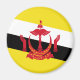 Die Nationalflagge Bruneis hat das Wappen Brunei in der Mitte, auf einem gelben Feld. Das Feld wird durch schwarz-weiße diagonale Streifen geschnitten, obwohl sie offiziell Parallelogramme genannt werden. Das gelbe Feld repräsentiert den Sultan von Brunei. (In Südostasien ist Gelb traditionell die Farbe des Königtums, und die königlichen Standards von Malaysia und Thailand, zusammen mit der Präsidialflagge Indonesiens, verwenden auch ein gelbes Feld.) Das Wappen besteht aus einem Halbmond (das den Islam symbolisiert), verbunden mit einem Sonnenschirm (das die Monarchie symbolisiert), und zwei umkehrten Händen auf beiden Seiten (was die Wohltätigkeit der Regierung bedeutet). Unter dem Halbmond ist ein Band. Auf dem Halbmond und der Schleife sind arabische Inschriften übersetzt als "Staat Bruneis, Friedensstätte" und Bruneis Motto "Immer im Dienst mit Gottes Führung"