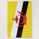 Dieses Design zeigt die Nationalflagge von Brunei (offiziell bekannt als die Nation Brunei, die Friedensstätte), ein Land an der Nordküste der Insel Borneo in Südostasien. Abgesehen von seiner Küste mit der Südsee ist Brunei vollständig vom malaysischen Staat Sarawak umgeben; das Land ist durch den Sarawak-Bezirk Limbang in zwei Teile geteilt. Brunei ist der einzige souveräne Staat ganz auf der Insel Borneo; der Rest des Territoriums der Insel ist durch die Nationen von Malaysia und Indonesien geteilt. Die Hauptstadt von Brunei ist Bandar Seri Begawan, die auch die größte Stadt des Landes ist. Weitere wichtige Städte und Städte in Brunei sind Kuala Belait, Seria, Tutong und Bangar.