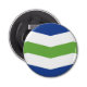 Button Bottle Opener mit einem Design mit der Fahne von Burlington, Vermont. Eine blaue, weiße und grüne Flagge