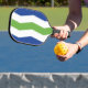 Pickleball Paddle mit einem Design mit der Flagge von Burlington, Vermont. Eine blaue, weiße und grüne Flagge