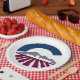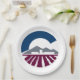 Papierplatte mit einem Design mit der Flagge von Chandler, Arizona. Eine weiße Flagge mit einem Siegel in der Mitte