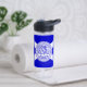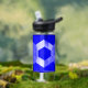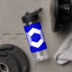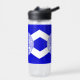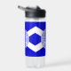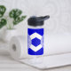 Wasserflasche mit einer der beiden offiziellen Fahnen von Charlotte, North Carolina. Eine blaue Fahne mit weißem Reißverschluss (St. Andrew's Cross) und einem Siegel
