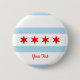 Runder Button mit der Flagge von Chicago (größte Stadt in Illinois), weiße und hellblau gestreifte Flagge mit vier roten Sternen