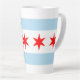 Latte Tasse mit der Flagge der Stadt Chicago, Illinois, weiß und hellblau gestreifte Flagge mit vier roten Sternen