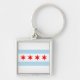 Square Keychain with flag of city of Chicago (largest city in Illinois), white and light striped flag with four red stars