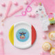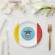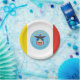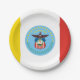 Papiertafel mit der Fahne der Stadt Columbus, Ohio; Fahne mit drei senkrechten Gelb-, Weiß- und Rotwänden mit blauem Siegel der Stadt mit Glatzenadler in der Mitte