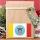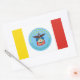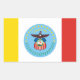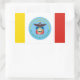 Aufkleber mit der Flagge der Stadt Columbus, Ohio; Flagge mit drei senkrechten Gelb-, Weiß- und Rotwänden mit blauem Siegel der Stadt mit Glatzenadler in der Mitte