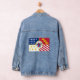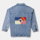 Denim Jacket mit der Fahne der Stadt Detroit, Michigan; rote, weiße und blaue Fahne mit US Flagge, Lilien, Drachen und Siegel der Stadt