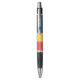 Pen mit der Flagge von Durham, North Carolina. Eine rote, gelbe und blaue Flagge mit sieben weißen Sternen