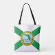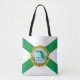 Tote Tasche mit einem Design mit der Flagge von Hollywood, Florida. Eine weiße Fahne mit einem grünen Andreaskreuz und einem städtischen Siegel im Zentrum