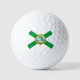 Golf Ball mit einem Design mit der Flagge von Hollywood, Florida. Eine weiße Fahne mit einem grünen Andreaskreuz und einem städtischen Siegel im Zentrum