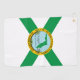 Golf Handtuch mit einem Design mit der Flagge von Hollywood, Florida. Eine weiße Fahne mit einem grünen Andreaskreuz und einem städtischen Siegel im Zentrum