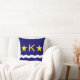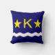 Kopfkissen mit Design mit Fahne von Kinshasa, Hauptstadt Stadt der Demokratischen Republik Kongo, blaue Flagge mit Weißwelle, zwei goldene Sterne und Buchstabe "K" im Zentrum