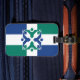 Gepäckanhänger mit einem Design mit der Flagge von Columbia, Missouri. Eine blaue und grüne Flagge mit weißem Kreuz