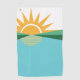 Golf Handtuch mit einem Design mit der Fahne der Korallenringe, Florida. Eine weiße, grüne und blaue Fahne mit einer gelben aufgehenden Sonne