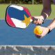 Pickleball Paddle mit einem Design mit der Flagge von Lafayette, Indiana.. Eine rote, weiße und blaue Flagge mit einem gelben Stern