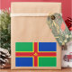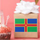 Aufkleber mit Design mit der Flagge eines historischen Landkreises von Lincolnshire in England, Großbritannien; grüne und blaue Flagge mit rotem und gelbem Kreuz und eine Fleur-de-Lis-Flagge in der Mitte