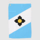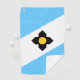 Golftücher mit der Flagge von Madison, Wisconsin; hellblaue und weiße Flagge mit schwarzem Kreuz und gelben Kreis in der Mitte
