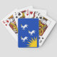 Poker spielen mit Design mit einer Fahne des historischen Landkreises von Merioneth in Wales, Großbritannien; blaue Azurflagge mit drei weißen Ziegen und gelber Sonne