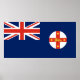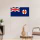 Dieses Design hat die Flagge von New South Wales, einem Staat an der Ostküste Australiens. New South Wales grenzt im Norden an Queensland, im Süden an Victoria und im Westen an Südaustralien; die Küste von New South Wales grenzt im Osten an die Korallen und das Tasman-Meer; außerdem ist das australische Hauptstadt Territory eine Enklave im Staat. Die Staat Hauptstadt New South Wales ist Sydney, die auch die bevölkerungsreichste Stadt in ganz Australien ist.