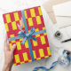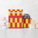 Umblättern mit Design mit einer Fahne des historischen Landkreises von Northumberland, in England, Großbritannien; rot-gelbe Fahne auf der Basis des Banners St. Oswald
