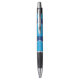 Pen mit einem Design mit der Flagge von Orem, Utah. Eine blaue, weiße und gelbe Flagge mit Berggipfeln und der Sonne im Zentrum