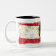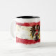 Dieses Einzelteil hat die österreichische Flagge in einer beunruhigten Art, die in einem geringfügigen Winkel ist. Die Flagge wird in einem horizontalen Bar mit aufgelösten Rändern geerntet. Die Flagge hat zwei horizontale rote Stangen und und ein horizontales weißes Bar des Singles mit dem österreichischen Wappen in der Mitte und in einer rauen Beschaffenheit. Dieses ist der Staat und Marinedie fahneversion der Flagge.