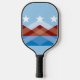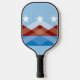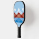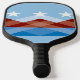 Pickleball Paddle mit einem Design mit der Flagge von Peoria, Arizona. Eine blaue, braune und weiße Flagge mit Berggipfeln und drei Sternen