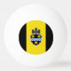 Klingeln pong Ball mit Flagge der Stadt von Pittsburgh, Pennsylvania; Flagge mit drei vertikalen Banden von Schwarzem und von Gelbem mit Illustration des Schlosses und des Schildes in der Mitte
