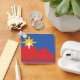 Schlüsselanhänger mit einem Design mit der Flagge von Pocatello, Idaho. Eine blaue Flagge mit roten Bergen und einem gelben Stern