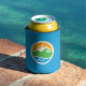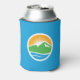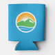 Can Cooler mit einem Design mit der Flagge von Provo, Utah. Eine blaue Fahne mit dem Provo City Logo in der Mitte. Das Logo repräsentiert den Utah See und die nahen Berggipfel mit der aufgehenden Sonne im Hintergrund