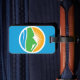 Gepäckanhänger mit einem Design mit der Flagge von Provo, Utah. Eine blaue Fahne mit dem Provo City Logo in der Mitte. Das Logo repräsentiert den Utah See und die nahen Berggipfel mit der aufgehenden Sonne im Hintergrund