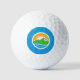 Golf Ball mit einem Design mit der Flagge von Provo, Utah. Eine blaue Fahne mit dem Provo City Logo in der Mitte. Das Logo repräsentiert den Utah See und die nahen Berggipfel mit der aufgehenden Sonne im Hintergrund