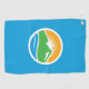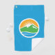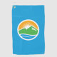 Golf Handtuch ein Design mit der Flagge von Provo, Utah. Eine blaue Fahne mit dem Provo City Logo in der Mitte. Das Logo repräsentiert den Utah See und die nahen Berggipfel mit der aufgehenden Sonne im Hintergrund