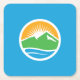 Ein Untersetzer mit einem Design mit der Flagge von Provo, Utah. Eine blaue Fahne mit dem Provo City Logo in der Mitte. Das Logo repräsentiert den Utah See und die nahen Berggipfel mit der aufgehenden Sonne im Hintergrund