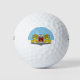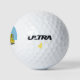 Golfbälle mit Design mit der Flagge von Riga, Hauptstadt Stadt Lettland; weiß-blaue Fahne mit Wappen mit zwei goldenen Löwen mit einem Schild in der Mitte