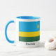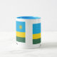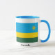 Die Flagge von Ruanda wurde am 25. Oktober 2001 adoptiert. Die Flagge hat vier Farben: blau, grün und zwei Formen Gelb (Standardgelb für das mittlere Band und was die Pantone Systemaufrufe "Gelb" für die Sonne sonnen). Das blaue Band stellt Glück und Frieden dar, symbolisiert das gelbe Band wirtschaftliche Entwicklung, und das grüne Band symbolisiert die Hoffnung des Wohlstandes. Die Sonne stellt Erleuchtung dar. [2] Die neue Flagge stellt nationale Einheit, Respekt für Arbeit, Heldentum und Vertrauen in der Zukunft dar. Sie wurde adoptiert, um Konnotationen zum Genozid 1994 zu vermeiden.