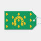 Dieses Design zeigt die Landkreis-Flagge von Rutland, einem der kleinsten Landkreis in Großbritannien. Es liegt in der Region East Midlands in England. Die einzigen Städte in Rutland sind Oakham, die Landkreis Stadt, und Uppingham. Das lateinische Motto von Rutland ist "Multum in Parvo", was "Much in Little" bedeutet. Die Flagge Rutlands zeigt ein goldenes Hufeisen (ein traditionelles Symbol von Oakham), umgeben von goldenen Eicheln vor grünem Hintergrund.