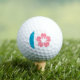 Golf Ball mit einem Design mit der Flagge von Salem, Oregon. Eine weiße und blaue Flagge mit rosa Kirschblüten