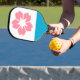 Pickleball Paddle mit einem Design mit der Flagge von Salem, Oregon. Eine weiße und blaue Flagge mit rosa Kirschblüten