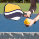 Ping Pong Paddle mit einem Design mit der Flagge von South Bend, Indiana. Eine weiße, blaue und gelbe Flagge mit einem roten Stern