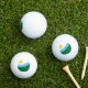 Golf Ball mit einem Design mit der Flagge von Spokane, Washington. Eine weiße und grüne Flagge mit blauen Linien, die den Spokane-Fluss und den Spokane-Fall symbolisieren, und eine gelbe Sonne