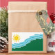 Aufkleber mit einem Design mit der Flagge von Spokane, Washington. Eine weiße und grüne Flagge mit blauen Linien, die den Spokane-Fluss und den Spokane-Fall symbolisieren, und eine gelbe Sonne