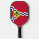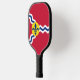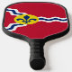 Paddle Pickleball mit der Fahne der Stadt St. Louis; rote Flagge mit weißen und blauen Wellen und blaue Flöte in gelbem Kreis