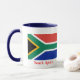 Die gegenwärtige Flagge der Republik Südafrika wurde am 27. April 1994, zu Beginn der allgemeinen Wahl 1994 adoptiert, um die Flagge zu ersetzen, die seit 1928 benutzt worden war. Die neue nationale Flagge, entworfen vom Staats-Verkünder Frederick Brownell, wurde beschlossen, um die neue Demokratie darzustellen. Die Flagge hat horizontale Banden von Rotem (auf die Oberseite) und von Blauem (auf der Unterseite), der gleichen Breite, getrennt von einer zentralen grünen Bande, die in horizontale "Y" eine Form aufspaltet, dessen Waffen an den Ecken der Hebemaschinenseite beenden (und folgen Sie den Diagonalen der Flagge). Das y umfaßt ein schwarzes isosceles Dreieck, von dem die Waffen von den schmalen gelben Banden getrennt werden; die roten und blauen Banden werden von der grünen Bande und von seinen Waffen durch schmale weiße Streifen getrennt. Die Streifen am Fliegenende sind im 5:1: 3: 1: Verhältnis 5.