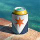 Can Cooler mit einem Design mit der Flagge von Syrakus, New York. Eine blaue, weiße und gelbe Flagge