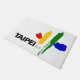Dieses Design zeigt die Flagge von Taipei (offiziell bekannt als Taipei City), die Hauptstadt und eine besondere Gemeinde von Taiwan (offiziell bekannt als die Republik China, ROC). Taipei City ist eine Enklave der Gemeinde New Taipei City, die weniger als 30 km südwestlich der nördlichen Hafenstadt Keelung liegt. Der größte Teil der Stadt liegt am Taipei-Becken, einem alten Seeufer. Das Becken wird durch die relativ engen Täler der Flüsse Keelung und Xindian begrenzt, die sich an der Grenze zum Western der Stadt anschließen und den Tamsui bilden. Der Name "Taipei" bezieht sich entweder auf die gesamte Metropole oder auf die Stadt selbst.