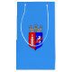 Papiertasche mit Design mit der Fahne von Tirana, Hauptstadt Stadt Albanien, blaue Fahne mit Wappen