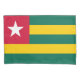 Dieses Design ist mit der Nationalflagge von Togo (offiziell bekannt als die togoische Republik), ein Land in Westafrika. Togo grenzt im Westen an Ghana, im Osten an Benin und im Norden an Burkina Faso. Das Land erstreckt sich südlich bis zum Golf von Guinea, wo sich seine Hauptstadt Lomé befindet. Lomé ist auch die größte Stadt in Togo. Weitere wichtige Städte in Togo sind Sokodé, Kara, Kpalimé, Atakpamé, Dapaong, Tsévié, Anié, Notsé und Cinkassé.